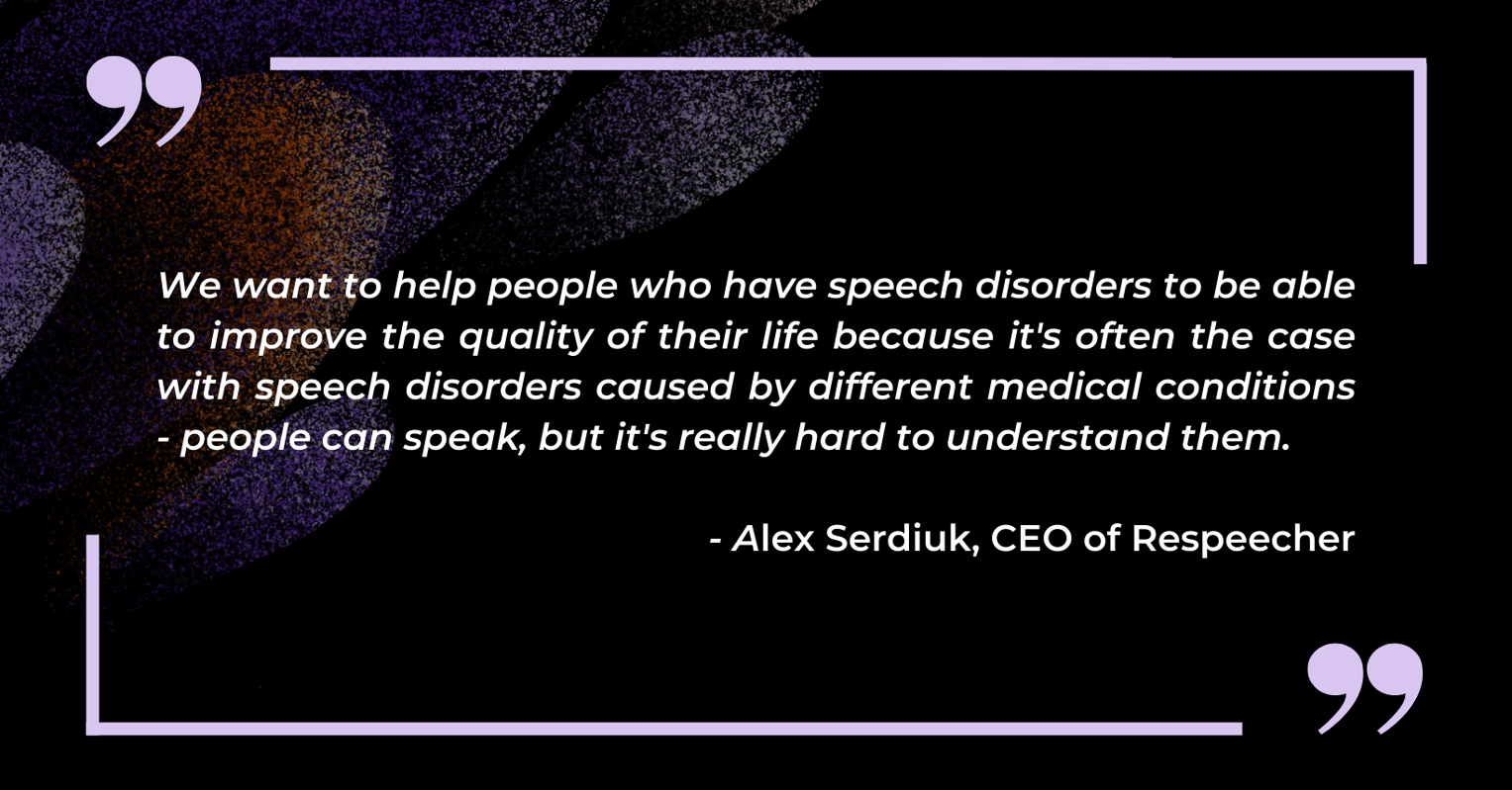 [AS] We want to help people who have speech disorders to be able to improve the quality of their life because it's often the case with speech disorders caused by different medical conditions - people can speak, but it's really hard to understand them. And we hear cases when patients say that they have to repeat whatever they say four or five times in order to be understood on a phone call, including on a phone call with their doctor.